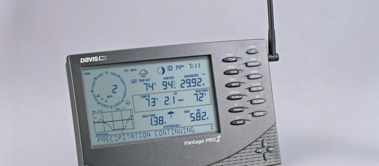 Bezprzewodowa stacja meteorologiczna Stacja Vantage Pro2 – 6153 EU. Wersja z aktywną komorą pomiaru. Umożliwia pomiar m.in: temperatury i wilgotności powietrza, ciśnienia atmosferycznego, siły i kierunku wiatru, opadów deszczu.