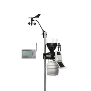 Bezprzewodowa stacja meteorologiczna Vantage Pro2 Plus – 6162 EU. Wersja z dodatkowymi czujnikami promieniowania słonecznego i UV. Umożliwia pomiar m.in: temperatury i wilgotności powietrza, ciśnienia atmosferycznego, siły i kierunku wiatru, opadów deszczu.